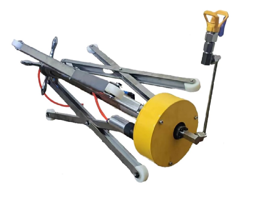 Для работы данного устройства также необходимо иметь окрасочный аппараты высокого давления для подачи краски и компрессор для питания пневмопривода вращения штанги.